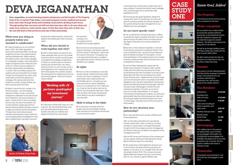 Deva Jeganathan, was featured on Your Property Network magazine, of how he manages to find great joint venture partnerships, significance of joint venturing, how to find suitable joint venture partners and also, discusses few case studies which were joint ventures.